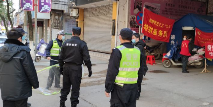 聯(lián)勤巡邏,每天穿街過巷踏遍了德興的溝溝坎坎;駐點檢測,體溫槍舉的手酸,做宣傳說的口干,搞檢查站的腿軟??柿?,喝的是冰冷的礦泉水;餓了,吃的是方便面、快餐;他們自己都記不清每天接觸了多少人,算不出走了多少路。他們把危險留給了自己,卻讓千千萬萬的老百姓生活的踏實、平安。